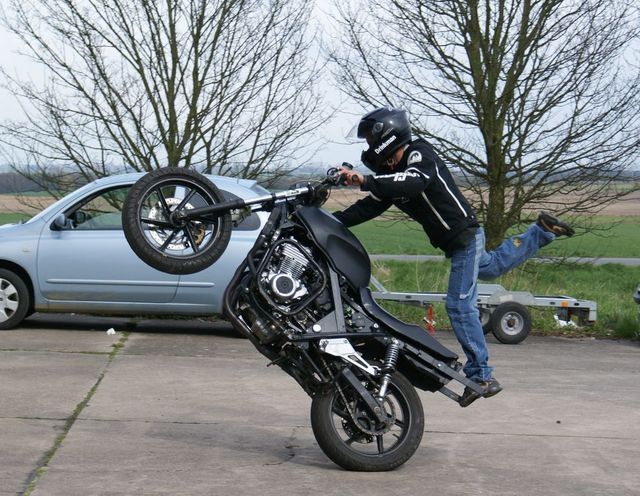 в 3-х точках и хорошо защищали крышки двигателя. У меня такие.  У французских стантеров немного другие.   Бугель ставим какой вам будет удобен . Я поставил такой .  Некоторые ставят немного другой .  Самое главное , чтобы он был вам удобен и мотоцикл мог на нем стоять вертикально , не падая.  Теперь выхлоп.