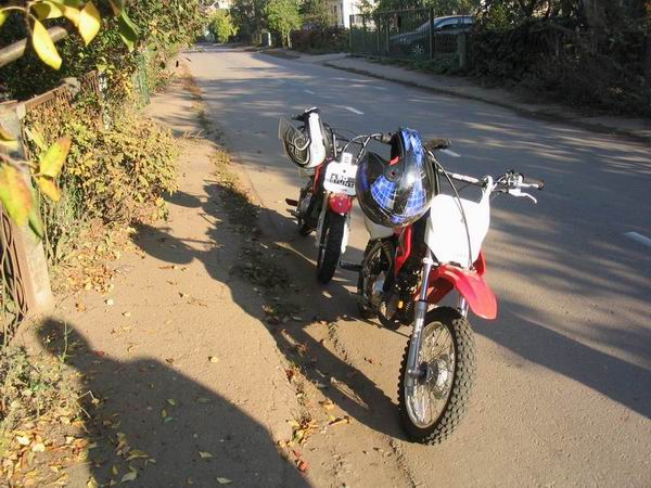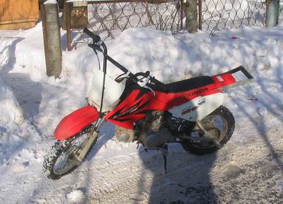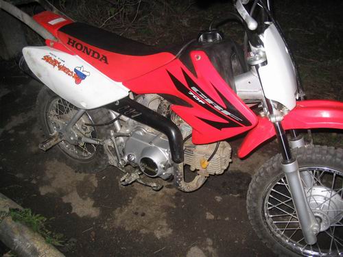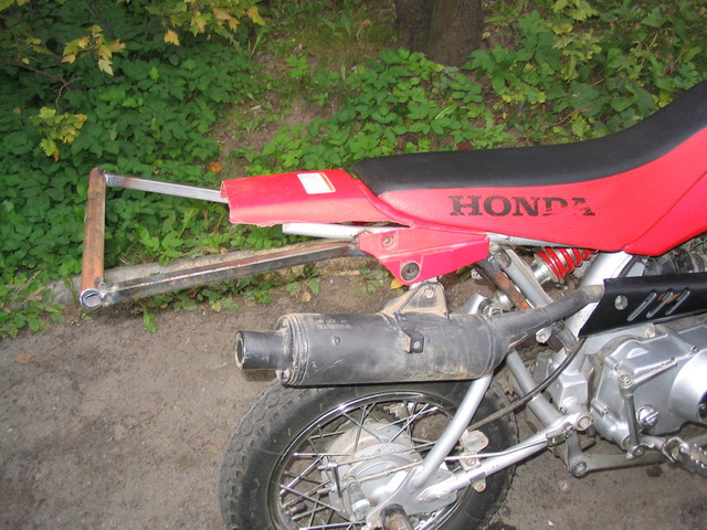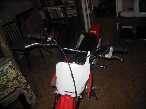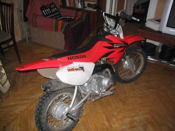 Изначально был куплен абсолютно стоковый CRF70.  Первым делом были установлены пеги от BMX на заднюю ось , что улучшило